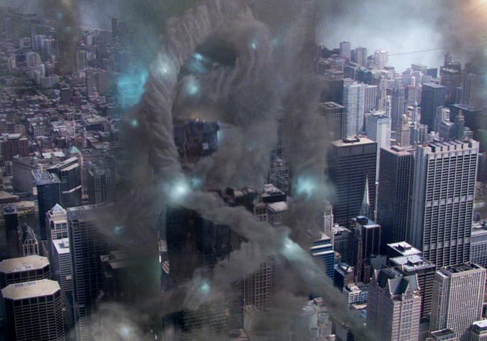 Een verdiende nummer 1. Deze keer zitten er geen haaien in de tornado’s, maar aliens. ’t Is te zeggen, elektromagnetische spanningsvelden die de aliens gebruiken om de aarde te verwoesten. Of toch vooral Chicago. Een vader-dochter-duo ontdekken, in samenwerking met een plaatselijke meteorologe, dat de tornado’s vol alien-bliksems zitten, en zoeken een manier om ze tegen te houden. Intussen worden ze tegengehouden door de regering, die beweert dat er niets aan de hand is. En o ja, de vader en de meteorologe worden intussen uiteraard verliefd op elkaar. Alles bij elkaar goed voor een flinke 3,1/10 op IMDb.
