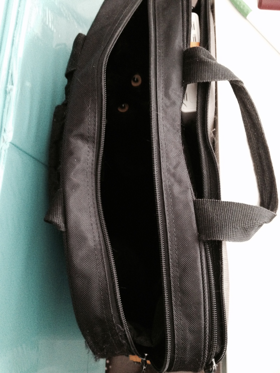 Geroken: Onraad. Geef toe, vanuit een laptoptas bespied worden, daar kunnen alleen maar problemen en letterlijk kattenkwaad van komen?