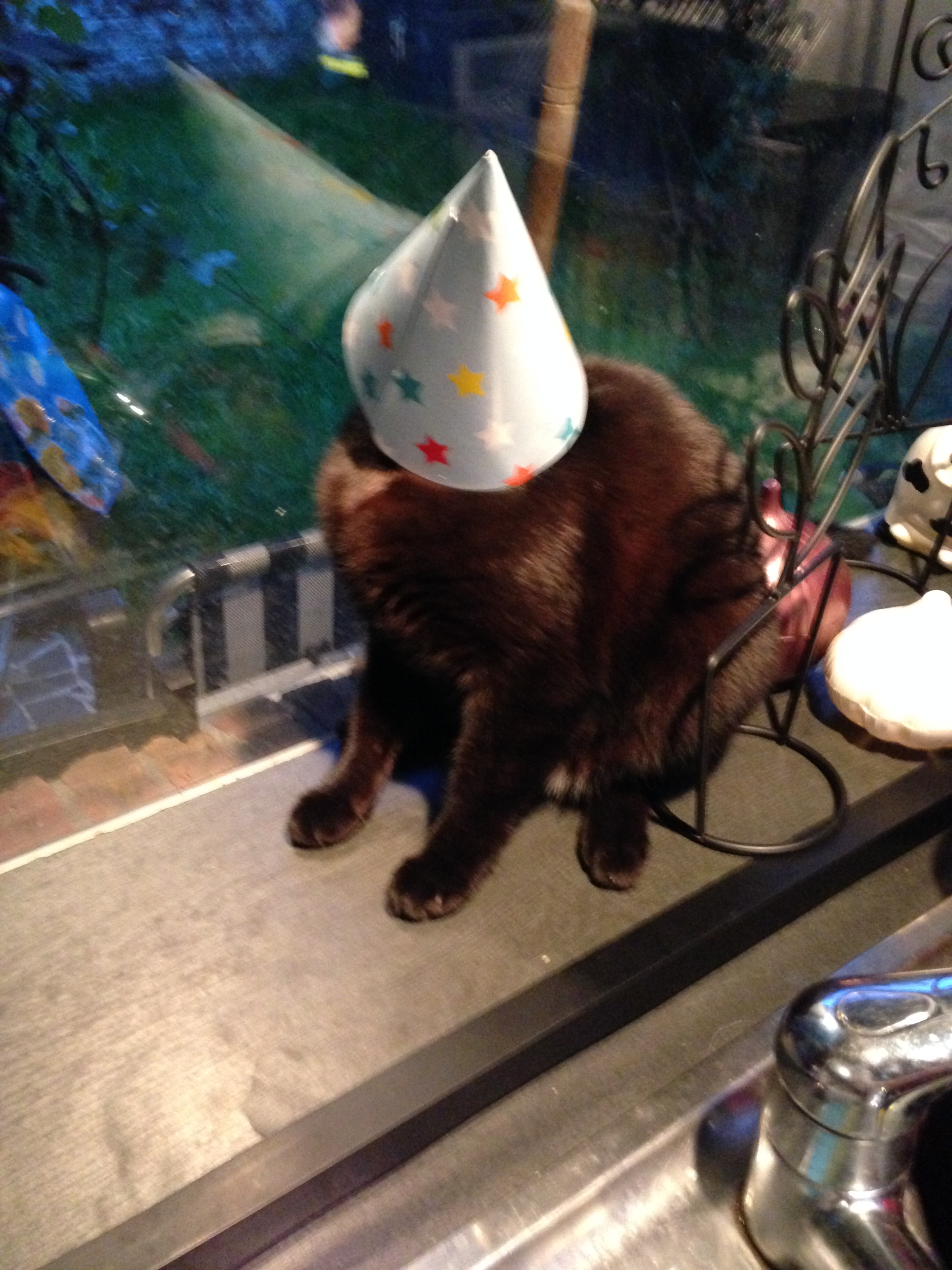 Ik laat jullie achter met een foto van mijn allerliefste Poes Springsteen, die deze week jarig was en dat moest vieren of ze nu wou of niet!