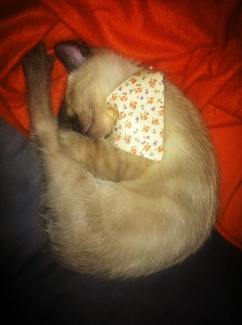 We moesten de elastieken onder onze voet steken en dan onze armen opheffen en daarna hem gewoon in onze handen nemen en dan onze armen zijwaarts strekken. Ik dacht toen we begonnen dat het een fluitje van een cent ging zijn, vooral omdat ik een groene rekker (weinig weerstand) had genomen. Een minuut later kon ik al niet meer mee. Volgens mij gebruiken ze die rekkers in oorlogszones ook als marteltuigen. Misschien ga ik volgende week wel toevallig heel dringend naar de wc moeten als de elastieken worden bovengehaald. Wat ik ook heb gevoeld is vertedering. Gisteren gingen we helpen bij de verhuis van een van mijn vriendinnen, en na het dozen heffen kreeg ik de opdracht om de kasten in de slaapkamer en de badkamer uit te kuisen. En wie zat er daar ook in die slaapkamer? Hun nieuwe kitten, die daar heel de dag moest blijven zitten omdat hij anders zou weglopen of te veel stress zou oplopen. En ik weet wel ergere dingen dan een paar uur in één kamer zitten met een kleine Siamees.