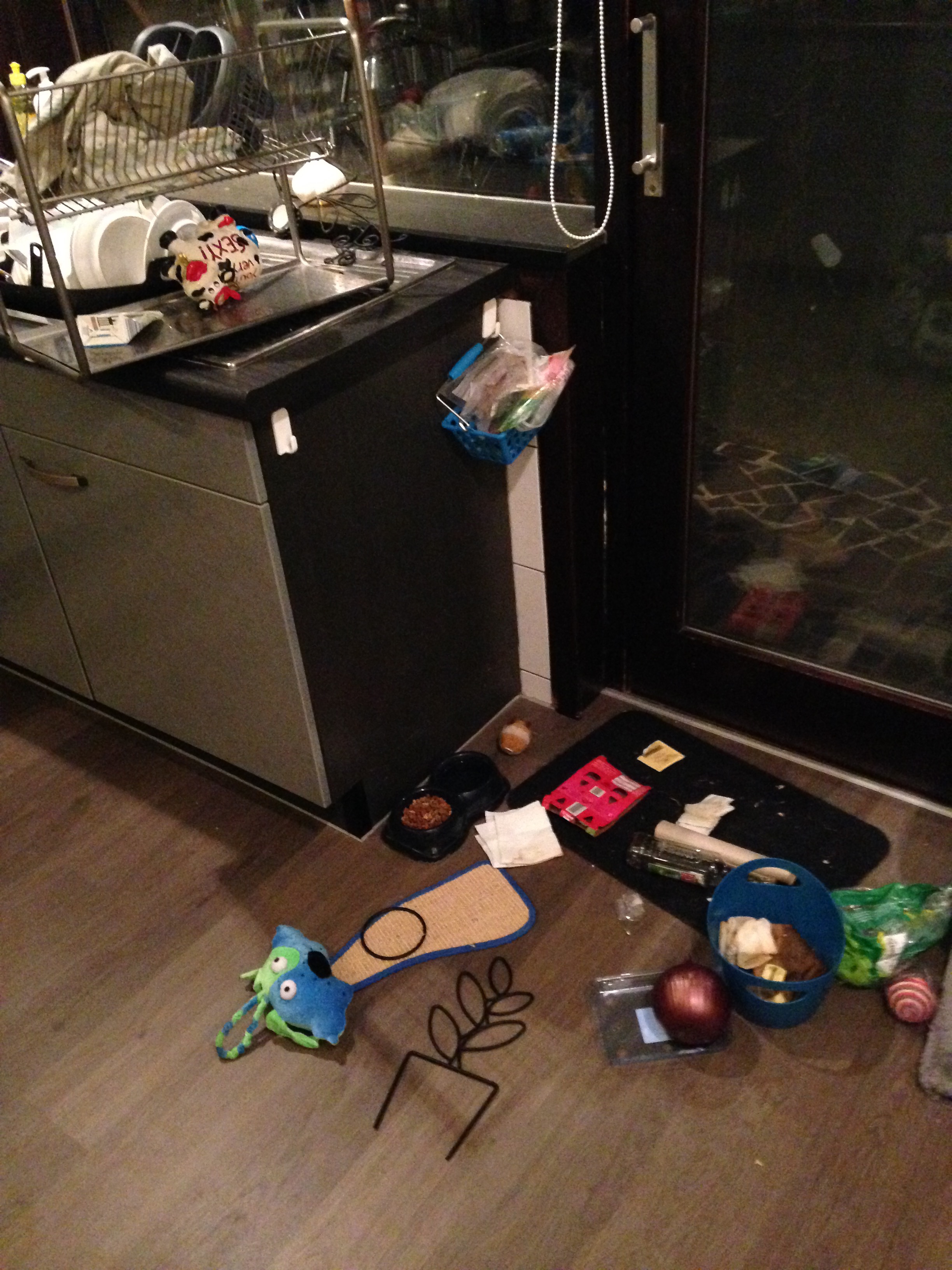 Alle dingen die op de grond liggen staan normaalgezien dus op ons venstertablet. Of misschien heeft ze een geheime rave gehouden, kan ook.
