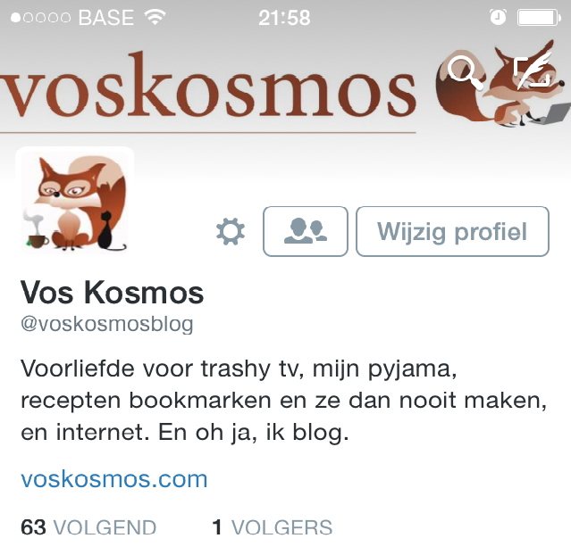 Dag mijn lieve zondagskinderen. Ik ga de ZZ vandaag beginnen met een dienstmededeling: ik heb een Twitteraccount gemaakt! Dus als jullie mijn onnozelheden graag op regelmatige basis in 140 tekens willen volgen, één adres: @voskosmosblog.