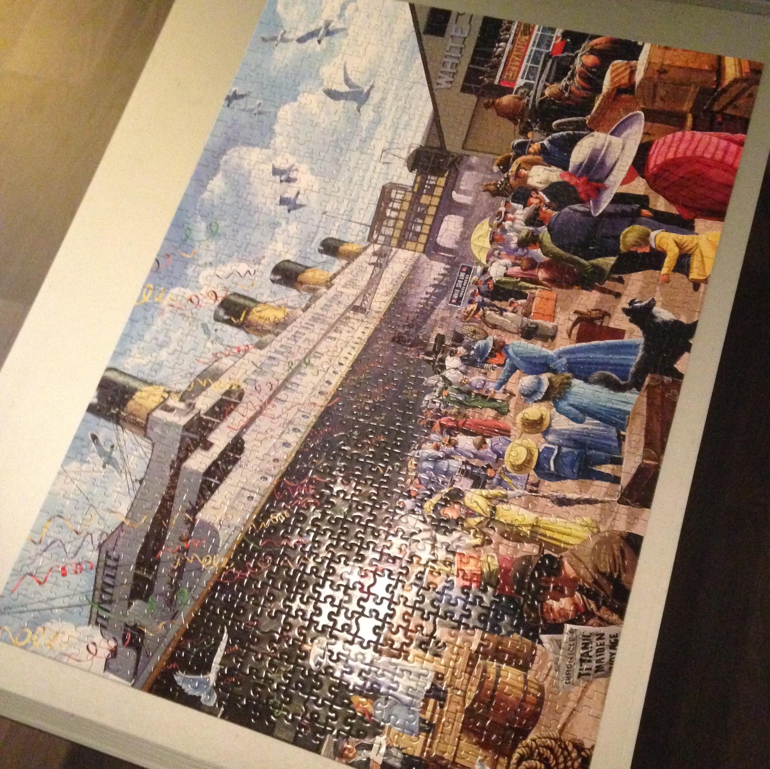 Geroken: Ik verander “geroken” vandaag in “gepuzzeld”. Da’s eens iets anders. Ik maak heel graag puzzels. Misschien een beetje gek voor iemand van mijn leeftijd, maar dat ontspant mij. Eventjes een paar uur verstand op nul. Ik puzzel altijd voor de tv, en het klinkt misschien raar maar ik kan mij dan enorm goed focussen op wat er op tv gezegd wordt. Het effect is hetzelfde als bij die rage van kleurboeken voor volwassenen. Als ik kleur, wordt mijn focus ook veel beter. Ik kijk meestal naar een paar afleveringen van de Days of Our Lives tijdens het puzzelen, daar kan ik perfect naar luisteren zonder dat ik de beelden nodig heb. De vorige puzzel die ik maakte was een fiasco omdat er te veel stukjes in de doos zaten. Ja. Echt waar. Niet te weinig, maar te veel. Om gek van te worden dus. Vorig weekend heb ik mij beter geamuseerd met een heel mooie puzzel van de Titanic, van het merk King. Ik kocht hem op bol.com, en er zaten nog twee andere puzzels in de doos. Drie puzzels voor 15 euro, daar kan je niet voor sukkelen. Omdat ze zo goedkoop waren was ik eerst wat bang voor de kwaliteit, maar dat was voor niets nodig. Als iemand nog tips heeft van waar ik leuke puzzels kan kopen, laat het mij zeker weten. Velen hebben een kinderachtig thema of zijn gewoon lelijk, dus laat die tips maar komen.